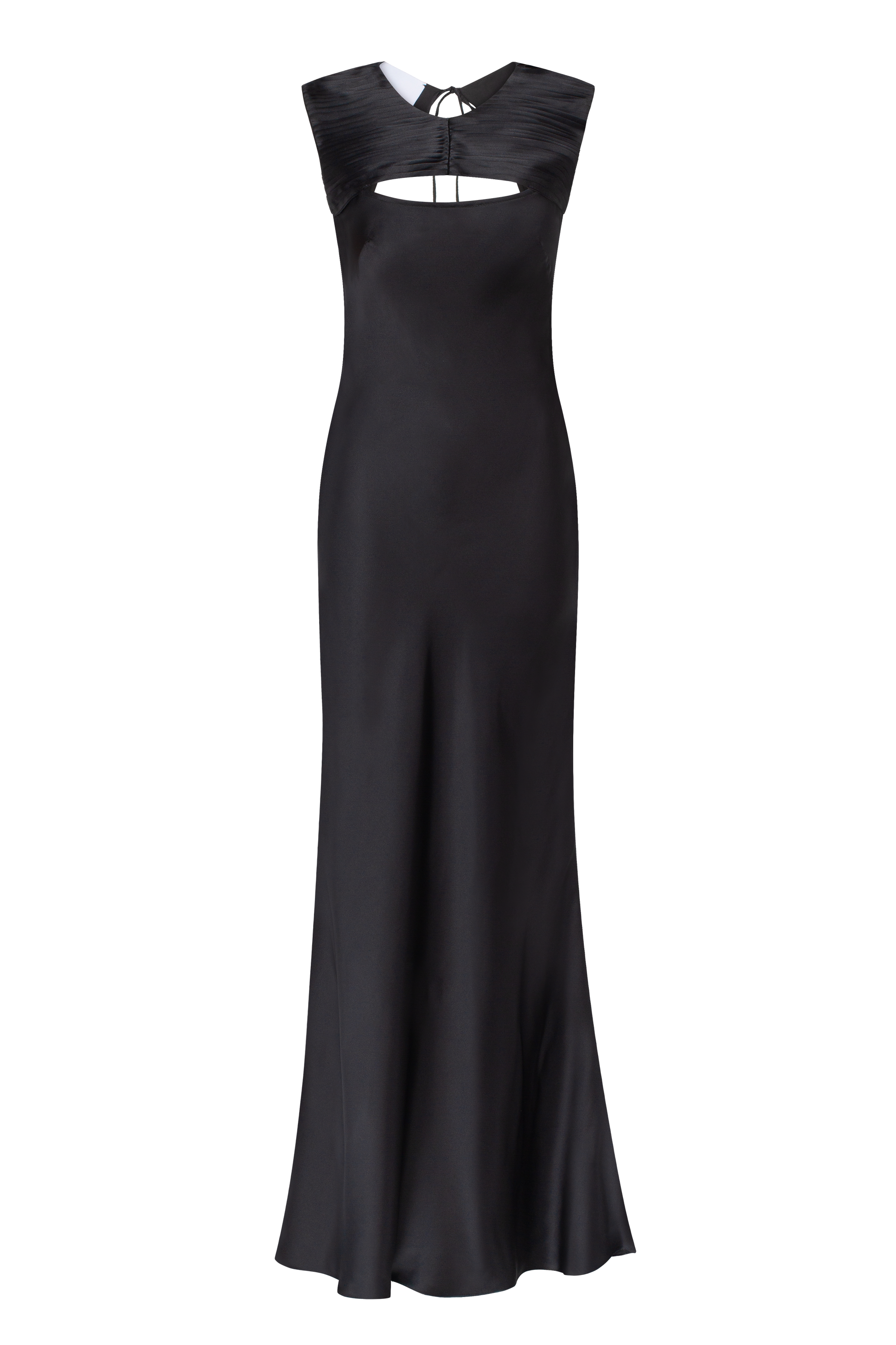 Elevate your style with this elegant Maxi H-line dress, featuring a hand-pleated collar element. Cut on the bias, this dress adds a touch of sophistication to any ensemble.