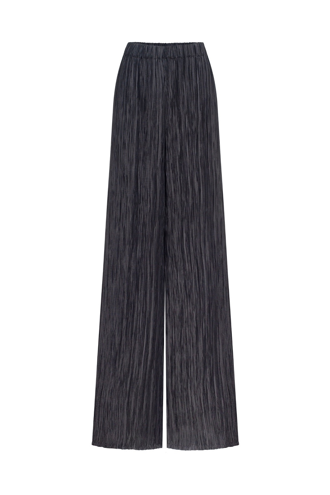 Elevate your look with these pleated column trousers, offering a sleek and refined silhouette. Their clean lines and pleated detailing make them a versatile option for both casual and formal styling.