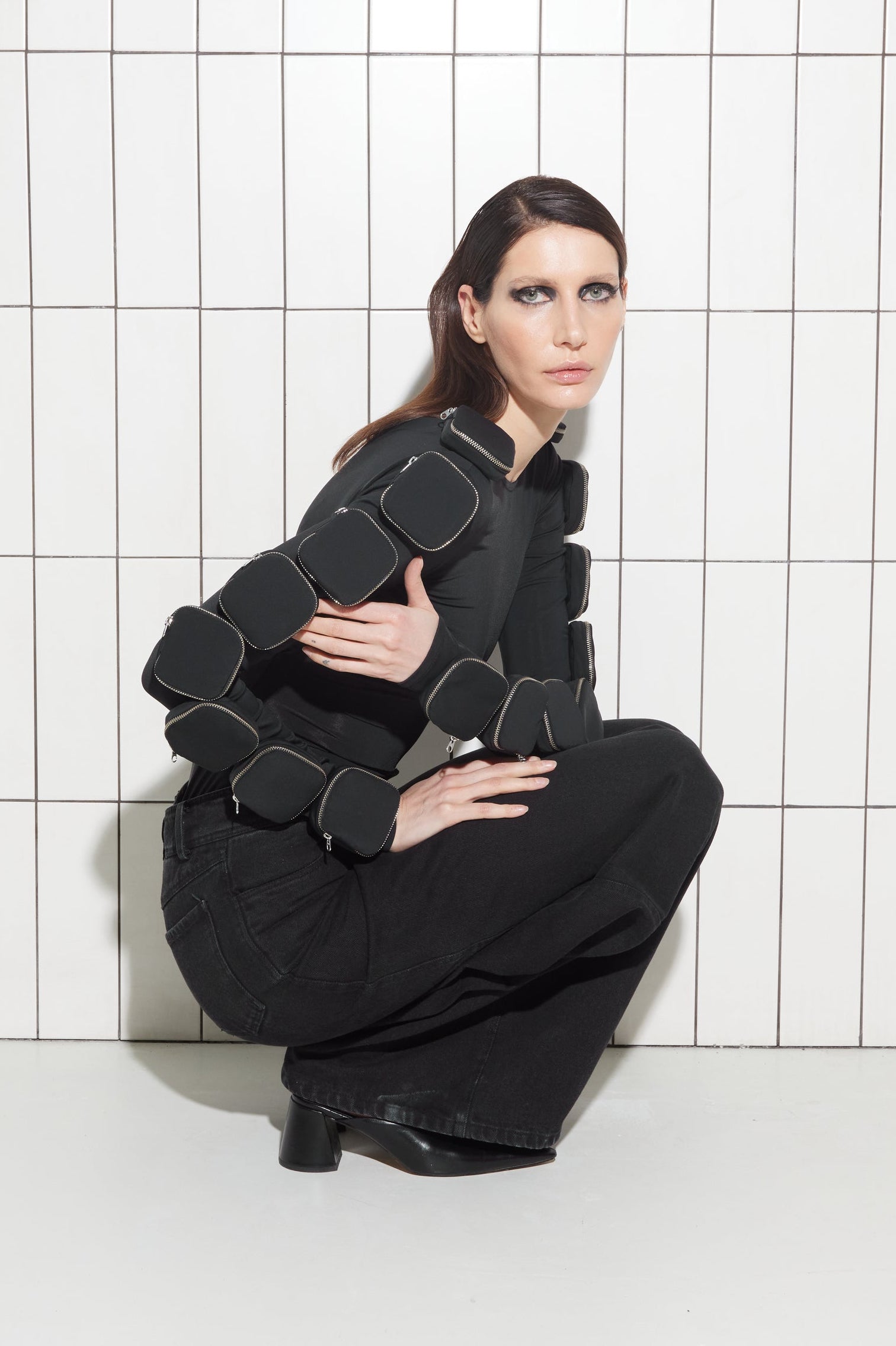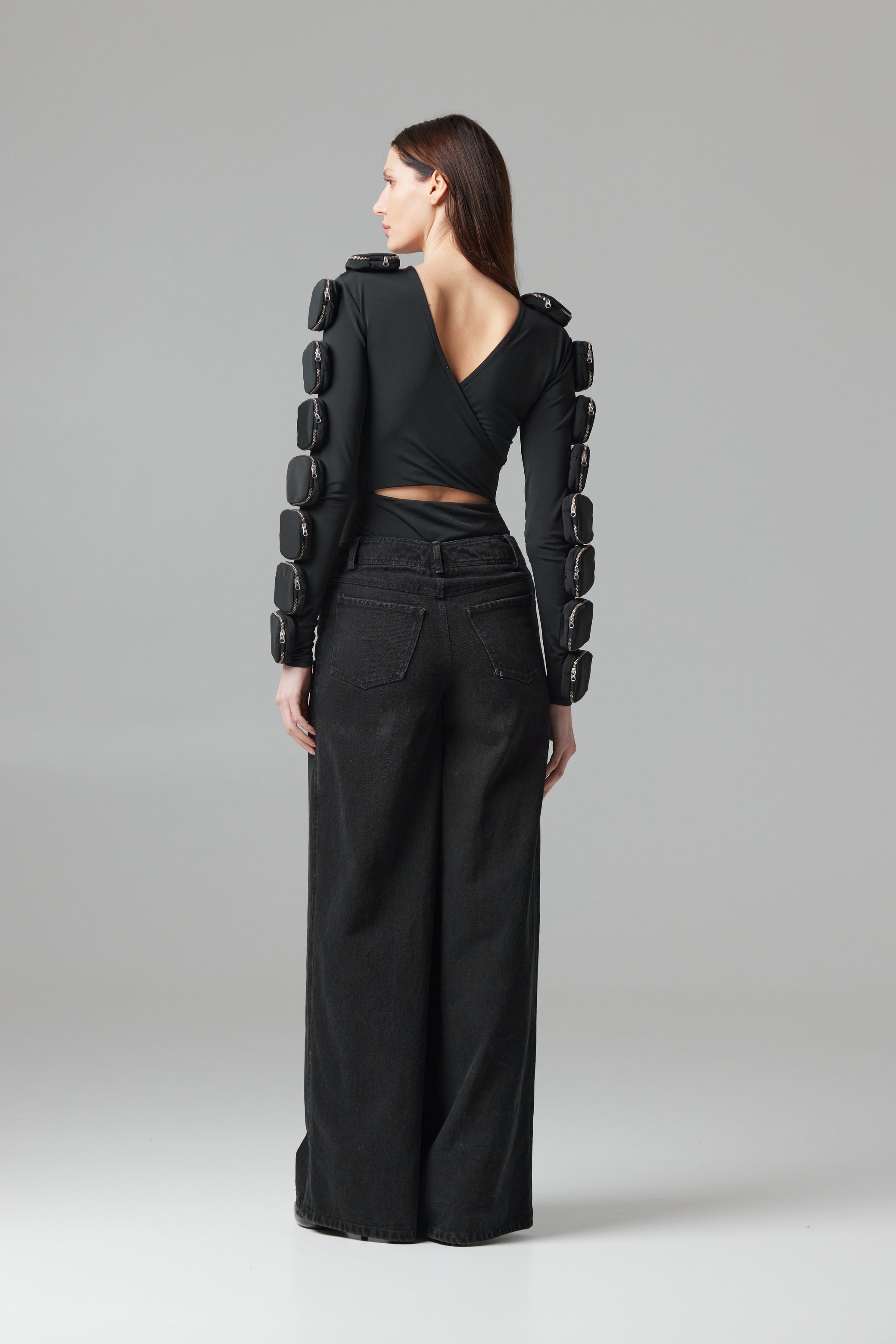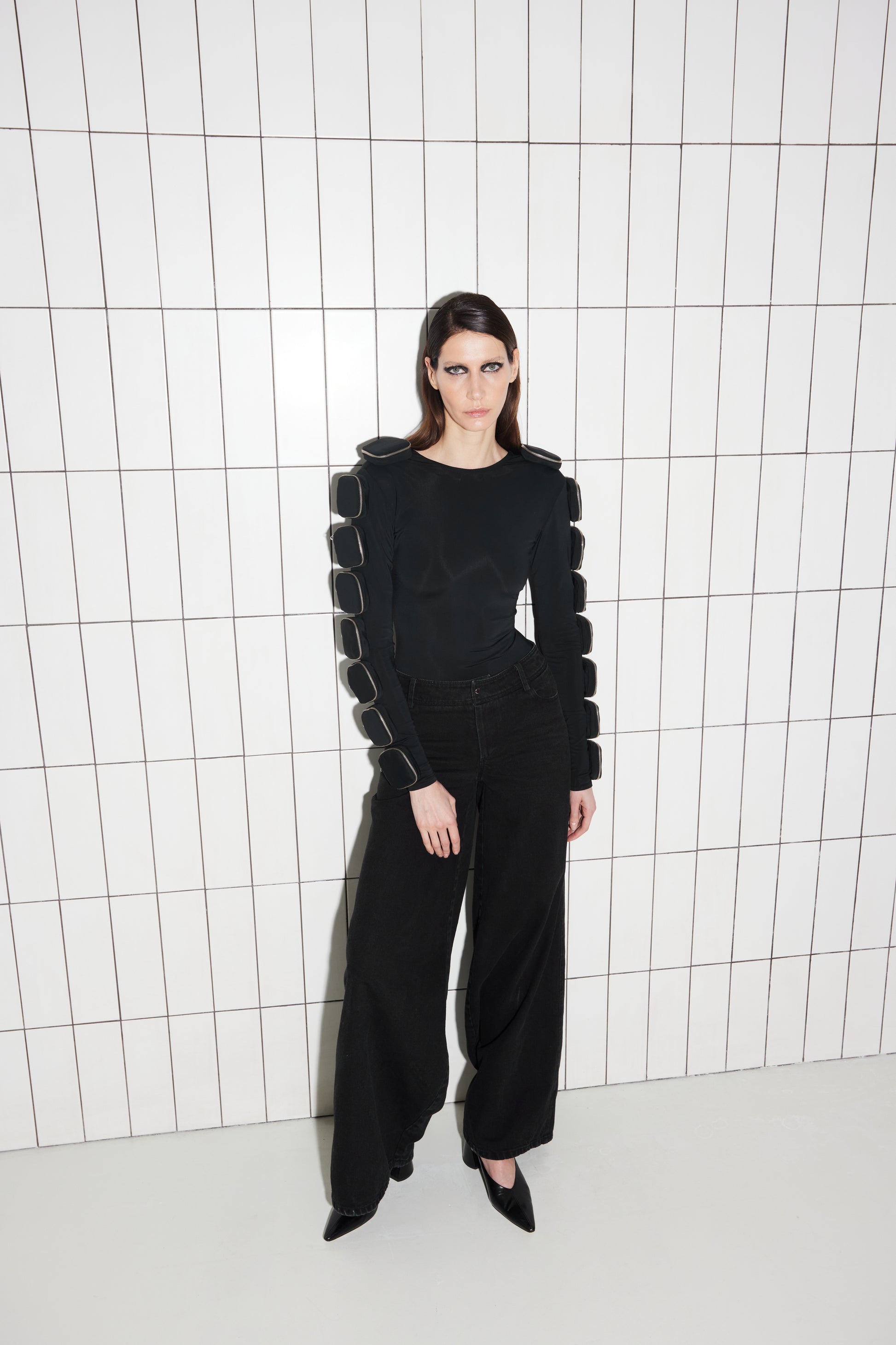 Slim Fit Body with long sleeves, mirrored decorative sleeve line