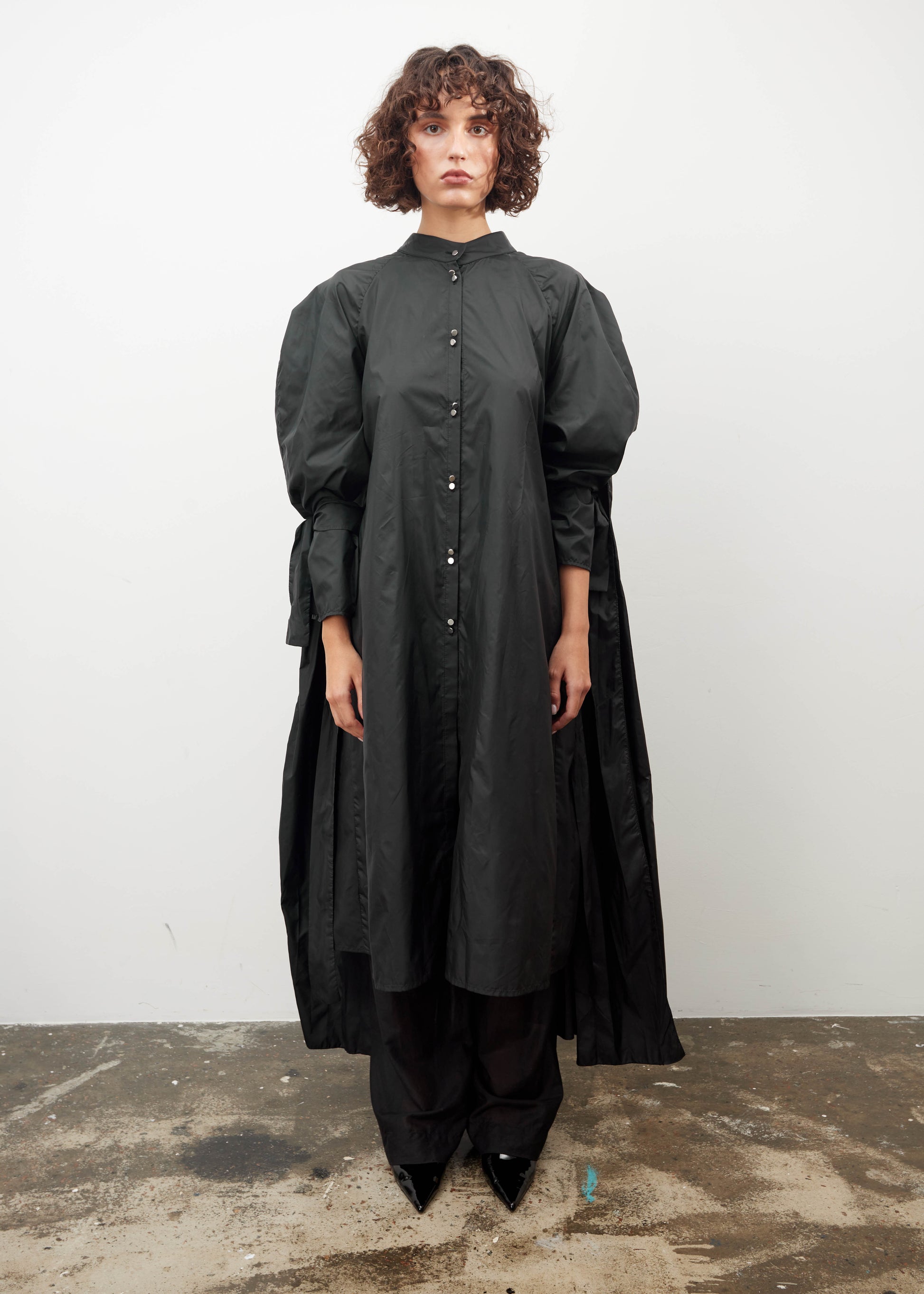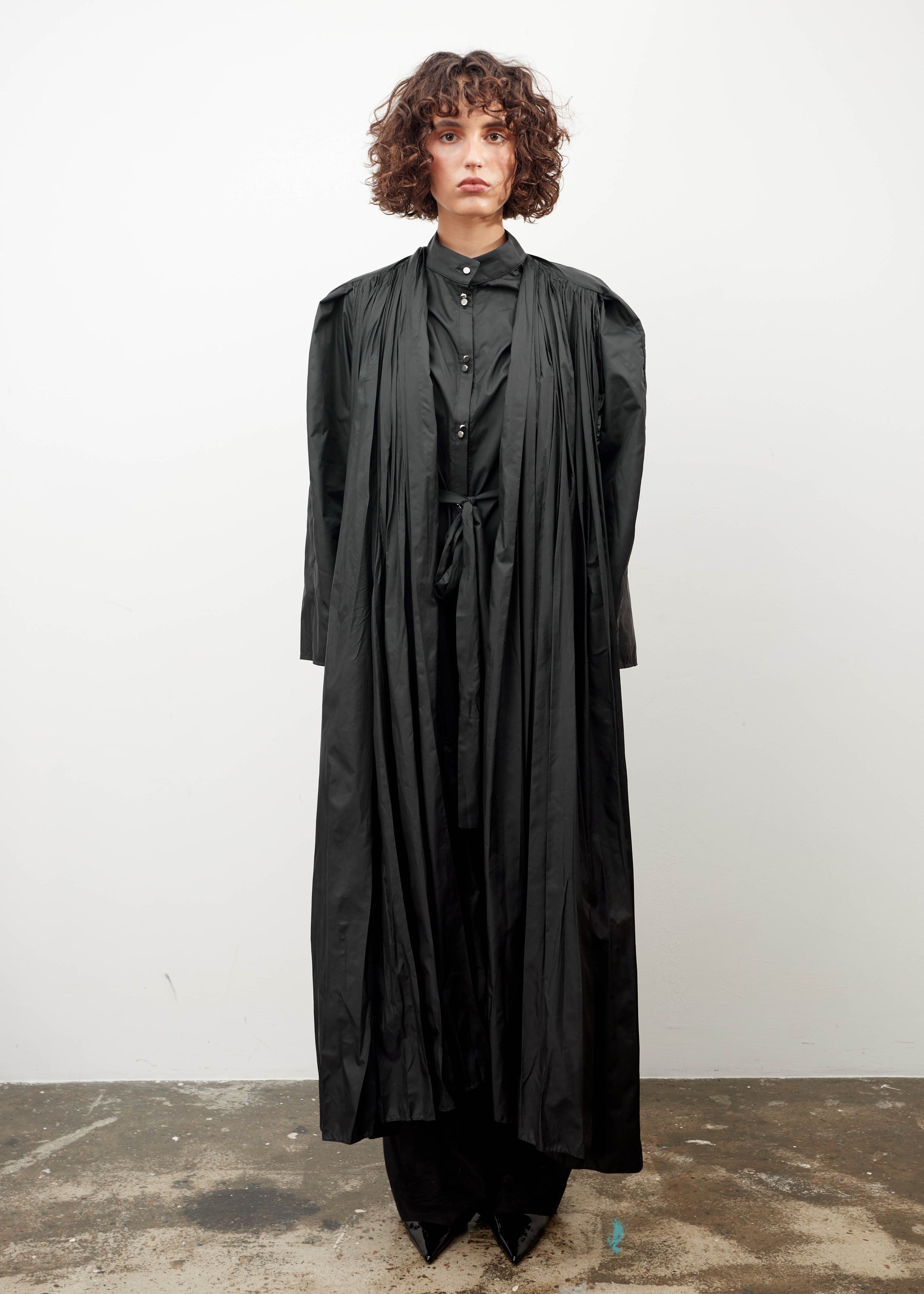 Relaxed fit Maxi TRENCH COAT with front dropdown layered elements.