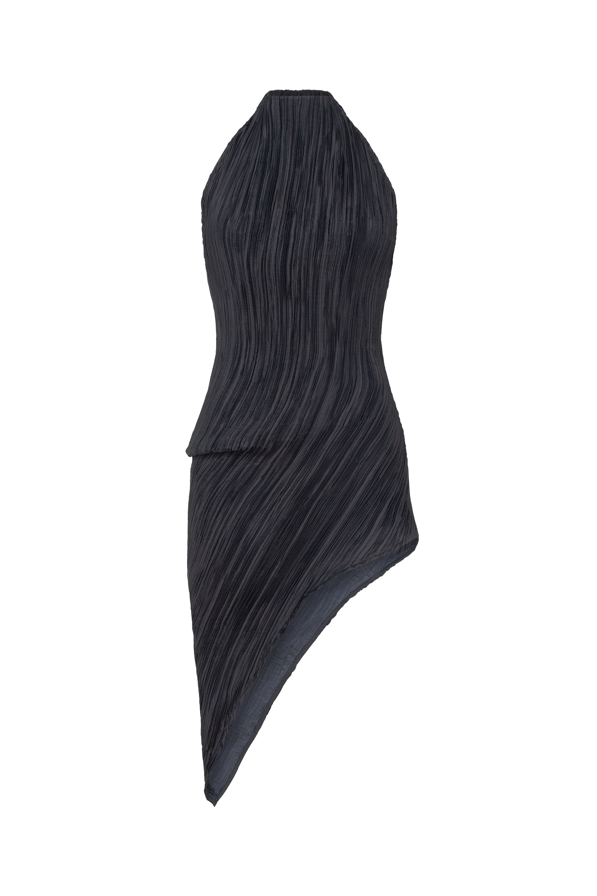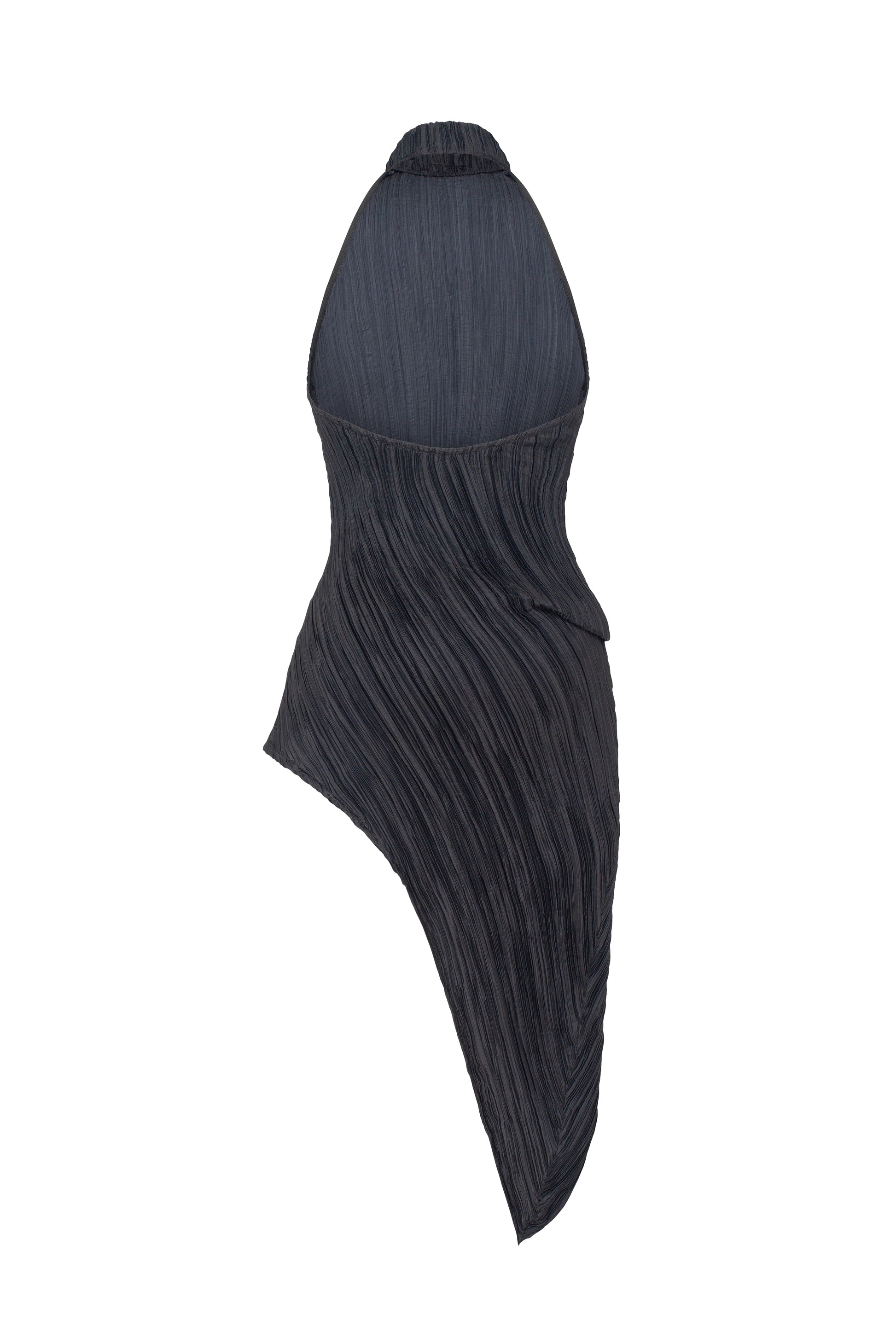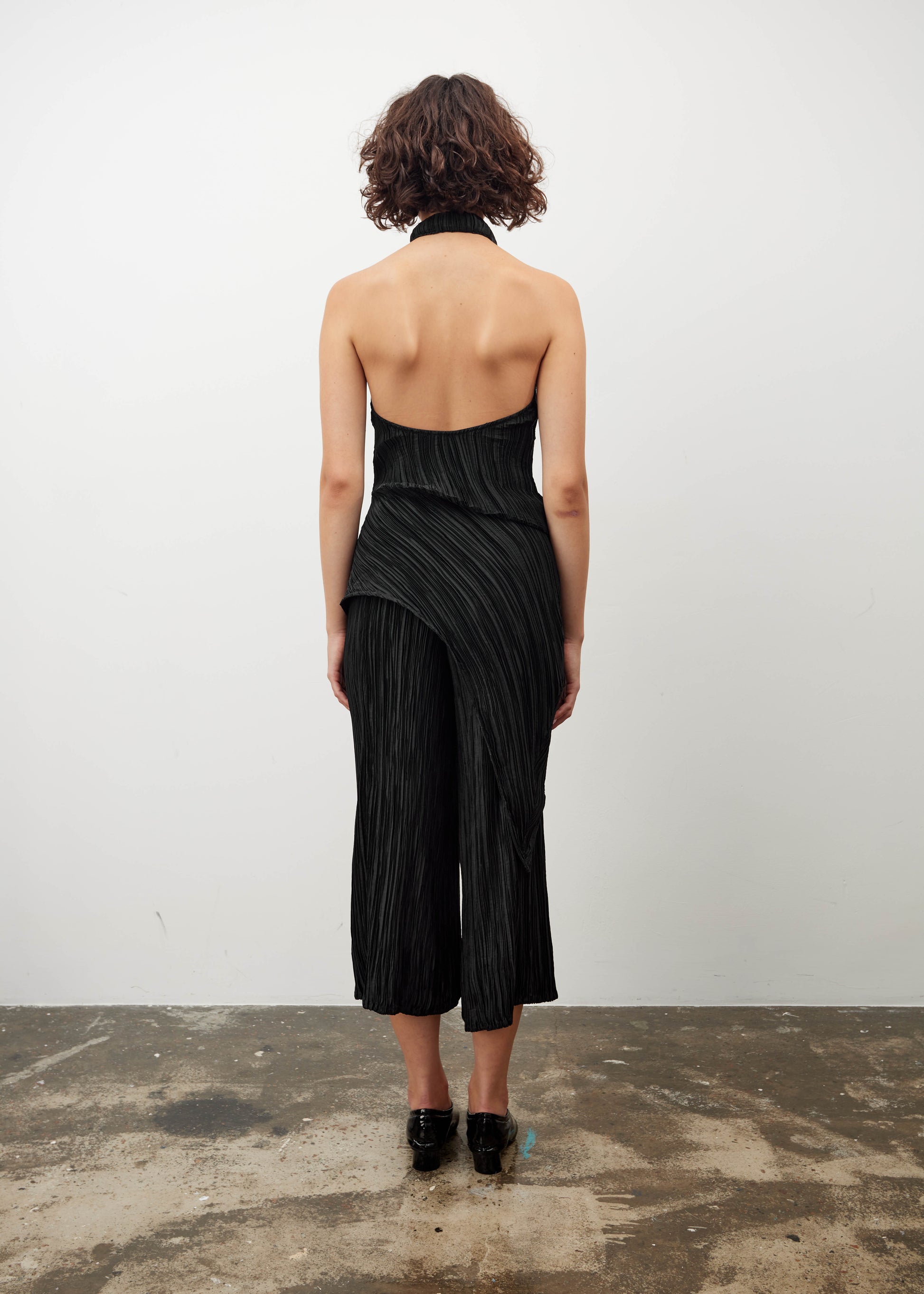 Elevate your style with our Open Back Pleated Asymmetric Top, a fusion of elegance and modern design. This piece features a high neck that delicately wraps under the front, complemented by an eye-catching open back. Crafted with an asymmetrical front cut, it offers a flattering fit that beautifully shapes the body. Perfect for those seeking a blend of sophistication and contemporary flair.